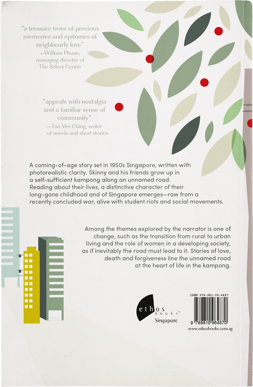 A coming-of-age story set in 1950s Singapore, written with photorealistic clarity. Skinny and his friends grow up in a self-sufficient kampong along an unnamed road. Reading about their lives, a distinctive character of their long-gone childhood and of Singapore emerges—raw from a recently concluded war, alive with student riots and social movements.