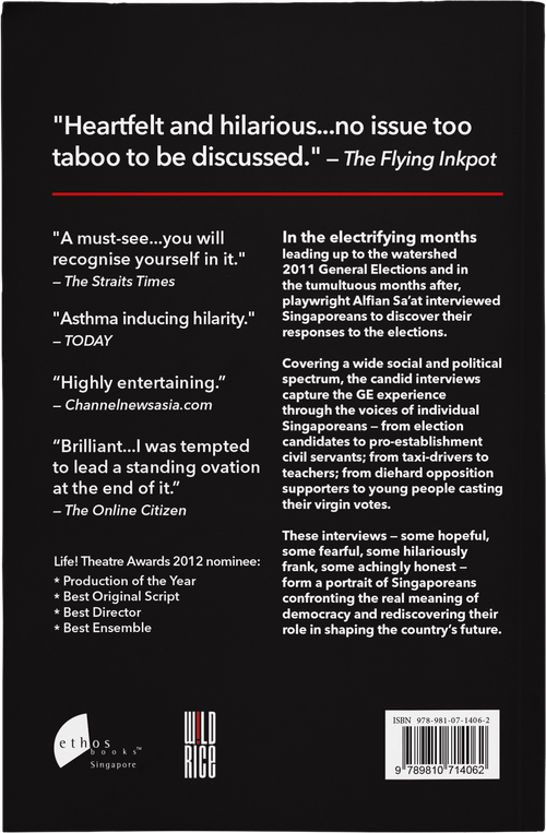 In the electrifying months leading up to the watershed 2011 General Elections and in the tumultuous months after, playwright Alfian Sa’at interviewed Singaporeans to discover their responses to the elections.