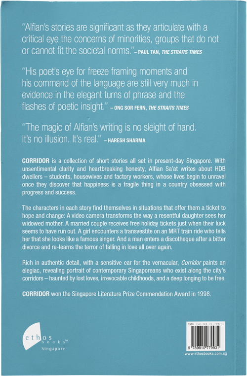 Rich in authentic detail, with a sensitive ear for the vernacular, Corridor paints an elegiac, revealing portrait of contemporary Singaporeans who exist along the city’s corridors – haunted by lost loves, irrevocable childhoods and a deep longing to be free.