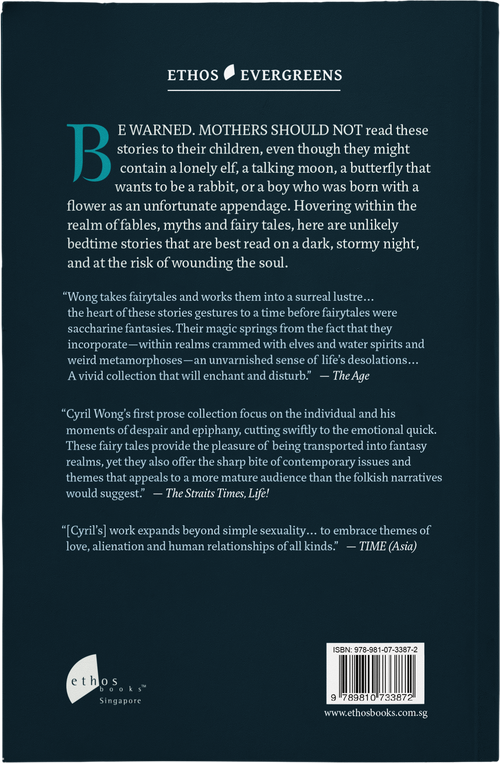 Be warned, mothers should not read these stories to their children, even though they might contain a lonely elf, a talking moon, a butterfly that wants to be a rabbit, or a boy who was born with a flower as an unfortunate appendage. Hovering within the realm of fables, myths and fairy tales, here are unlikely bedtime stories that are best read on a dark, stormy night, and at the risk of wounding the soul.