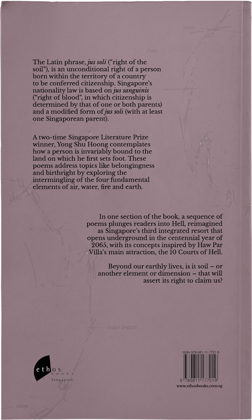 A two-time Singapore Literature Prize winner, Yong Shu Hoong contemplates how a person is invariably bound to the land on which he first sets foot. These poems address topics like belongingness and birthright by exploring the intermingling of the four fundamental elements of air, water, fire and earth.