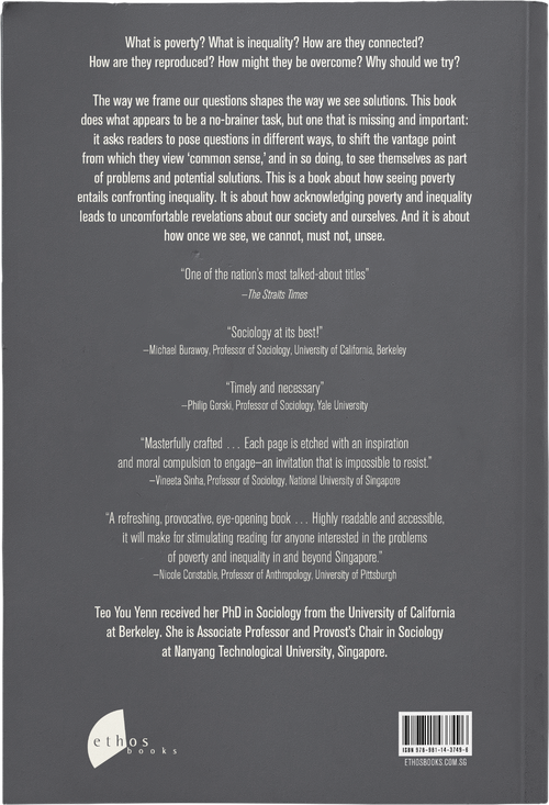 With courage, integrity and scientific tools, Teo You Yenn enters the hidden abode of inequality. Immersing herself in the underside of Singapore society, she makes the invisible visible – contrasting the hardships and precarity of family life, schooling, parenting, housing among low-income residents with the taken-for-granted comforts of the middle class. She disrupts widely-held national mythologies, calling attention to the defects of Singapore’s welfare state and how these might be repaired. Sociology at its best! —Michael Burawoy, Professor of Sociology, University of California, Berkeley