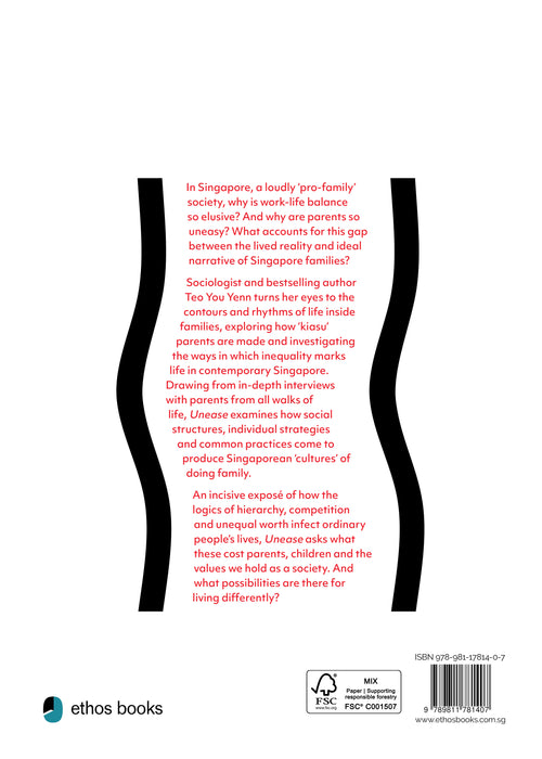 "In this powerful and persuasive book, Teo You Yenn challenges Singapore’s self-image as a pro-family society. She reveals the contradictions of a state that champions family life yet often overlooks the stress, anxiety, exhaustion, and gender and class inequalities that define it. Kiasu parenting, she argues, is less a personal choice and more a response to structural conditions and policies. If Unease leaves you unsettled, then it has succeeded in prompting us to confront the difficult questions it raises." —Donald Low, Professor of Practice,Hong Kong University of Science and Technology